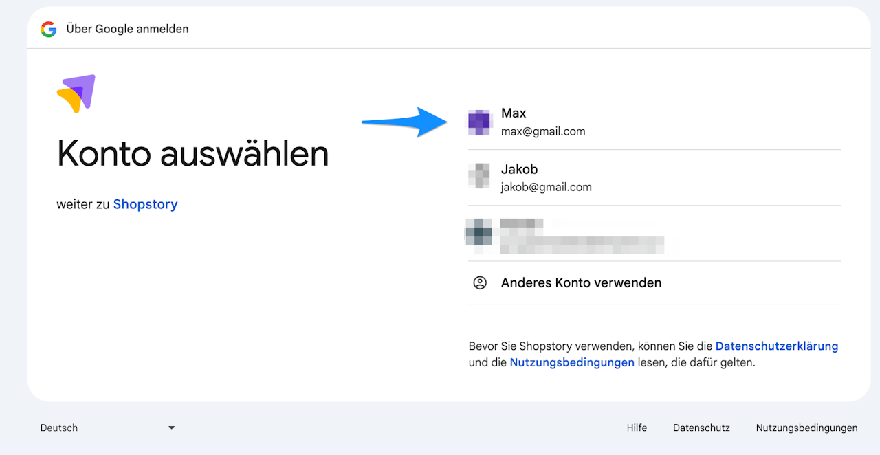 To connect your Google Ads account click on connect and select the user which has access to the Google Ads account you want to use.