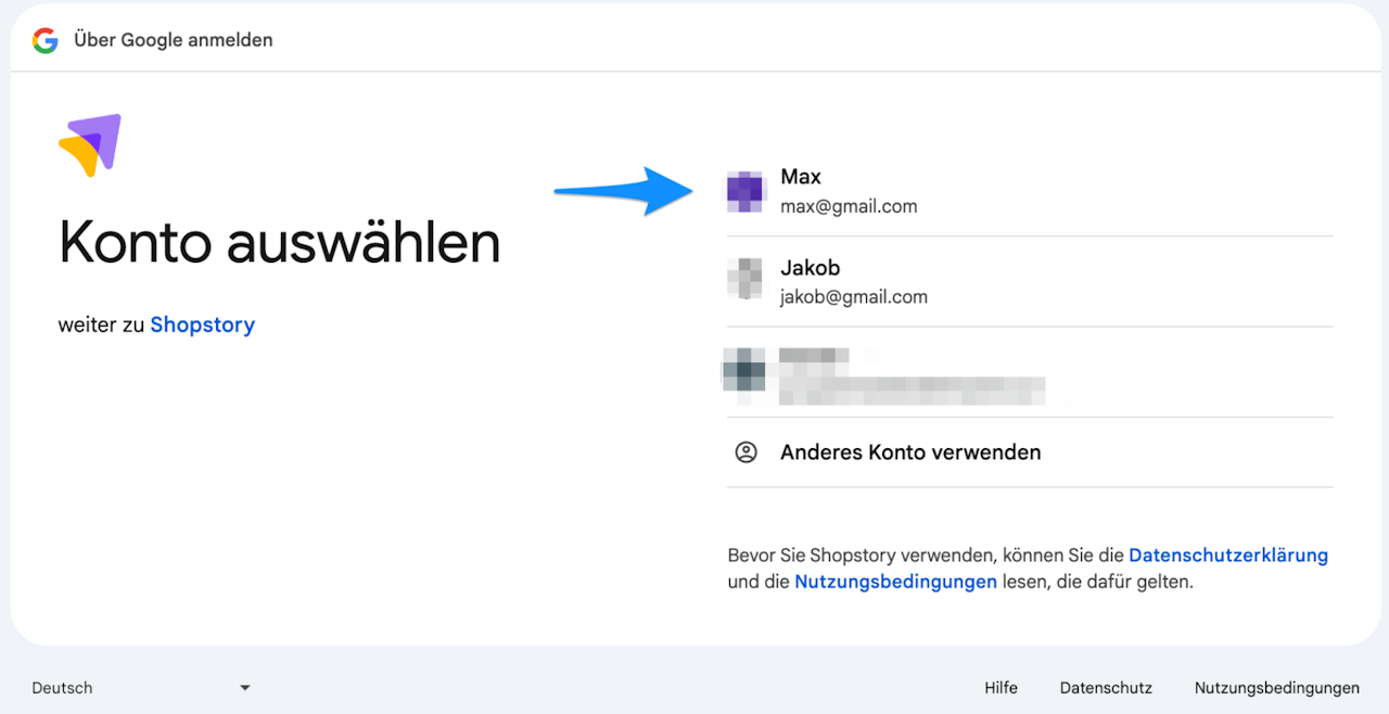 To connect your Google Merchant Center account click on connect and select the user which has access to the Google Merchant Center account you want to use.