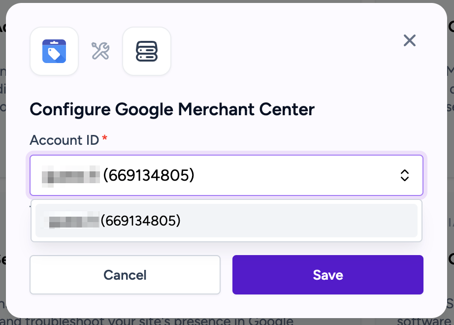 Once successfully connected configure which Google Merchant Center account you want to use by simply selecting the respective Google Merchant Center account from the dropdown list.