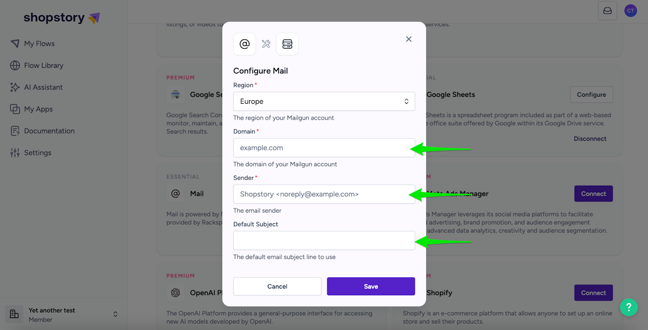 Once you added the API key you can configure the application and add your own subject line, domain and sender.