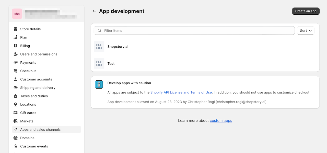 Next move to your settings and go to "Apps and Sales channels".
