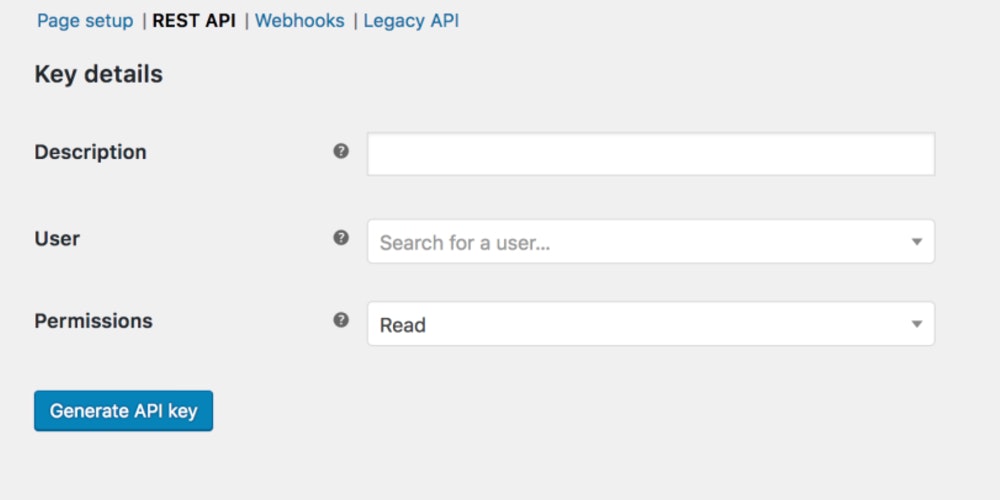 To connect your Woocommerce account with Shopstory you need to create a customer key and consumer secret.