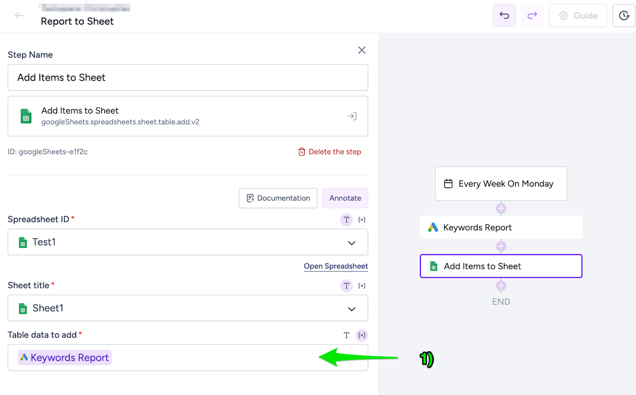 Select the Sheet: Choose the specific Google Sheet where the items will be added.