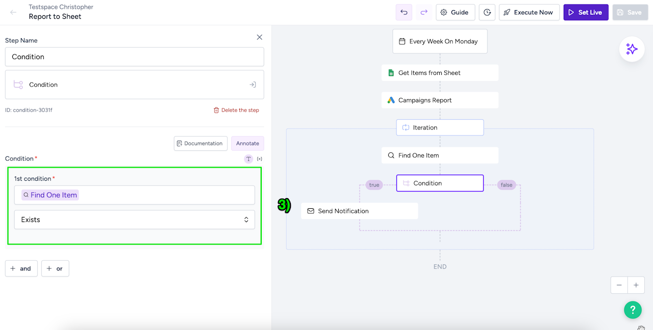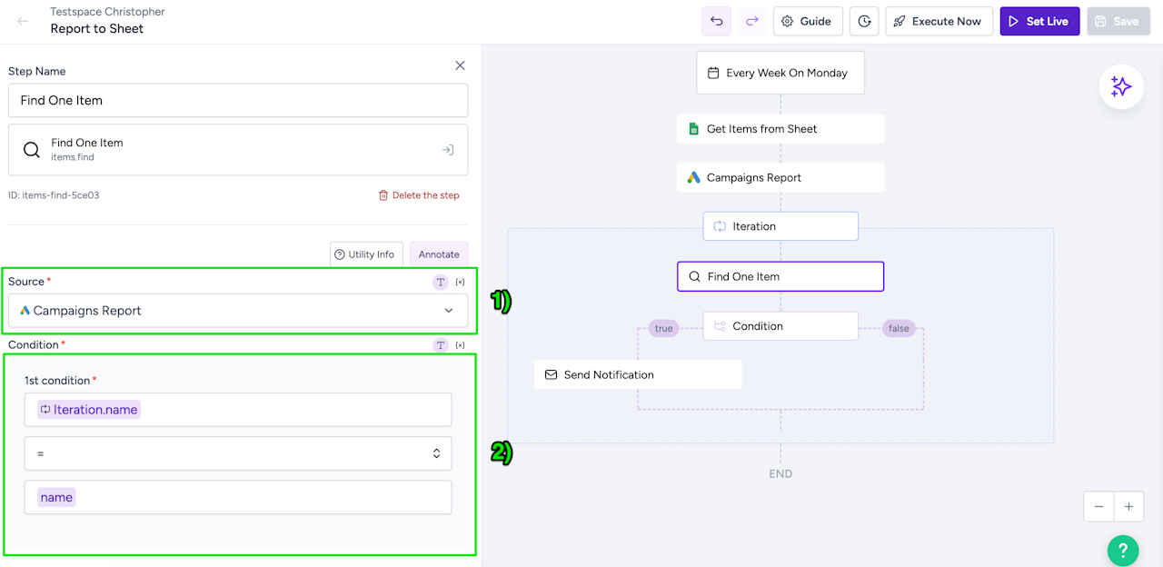Set Up a Condition (2): Specify the criteria to find a single matching item within the table or dataset.