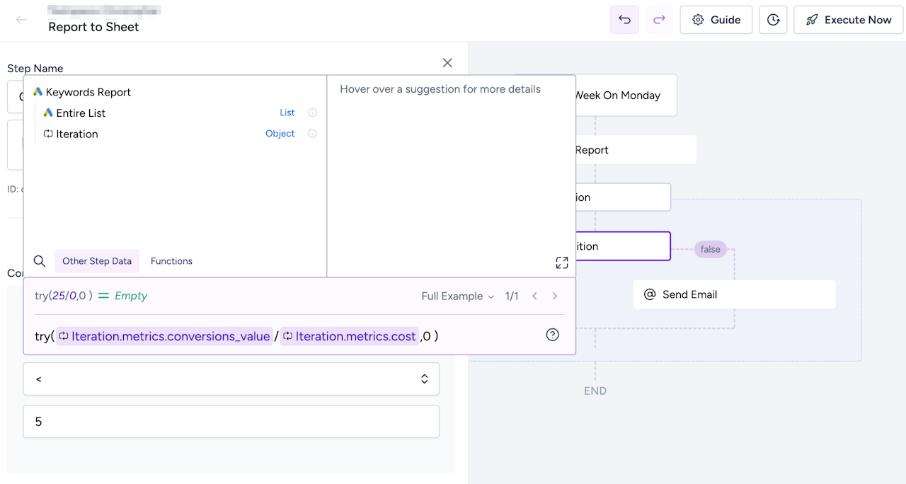 The Try function provides a fallback value when a calculation or operation fails. This is useful for handling errors gracefully in your flows, ensuring that failures do not break the entire process.