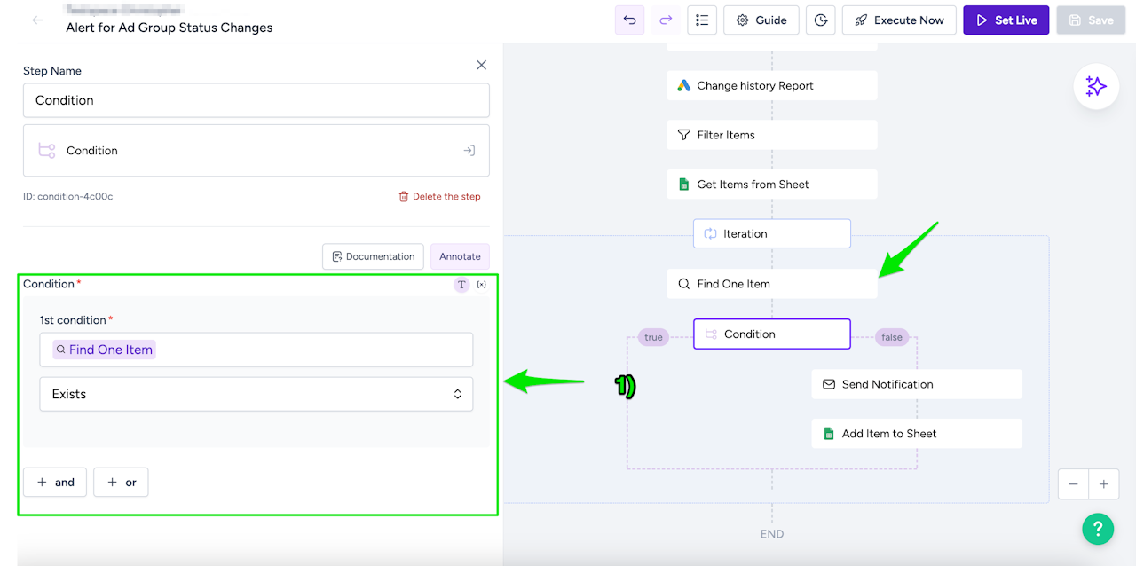 If the condition is met (TRUE), define what should happen next (e.g., send a notification, adjust bids, or update a spreadsheet).